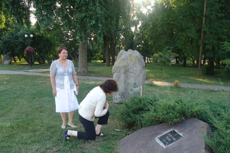 Оксана Михайлівна вклонилася перед пам’ятним знаком «Борцям за волю і незалежність України», де закладено гільза із землею з могили її батька, привезеної з Дубніци над Вагом паном О. Ляшевим в минулому році.