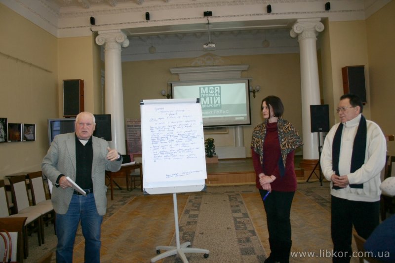 Олена Костриця, модератор практикуму, привітала присутніх, познайомила з учасниками практичної частини заходу – представниками обласних засобів масової інформації, та зауважила, що співпраця зі ЗМІ – це один з напрямків роботи проекту «Пульс», а бібліотекар виступає комунікатором між владою, громадою і ЗМІ.