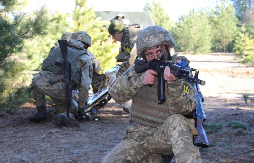 У 169-му навчальному центрі Сухопутних військ Збройних Сил України «Десна» військові продемонстрували, як бойові медики здійснюють евакуацію поранених з поля бою.