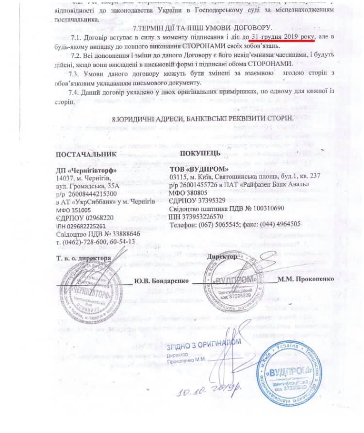 У розпал нещодавнього кадрового протистояння виконувач обов’язки директора ДП «Чернігівторф» Юрій Бондаренко укладає договір з ТОВ «Вудпром», в якому зобов’язується до кінця 2019-го року відпускати приватній фірмі товар за заниженою вартістю.